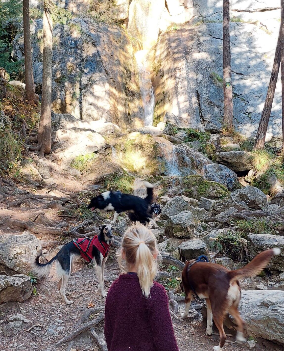 Die Route führte uns vom Sebastian Wasserfall auf die Mamauwiese über die Burg Ruine Losenheim wieder zurück zum Wasserfall. Der Wasserfall-Wirt verwöhnte uns anschließend mit leckerem Flammkuchen, Forelle und Hirschragout. Mit dabei 16 Hunde, Freunde und Familie. Es war suuuper harmonisch und hat uns wieder einmal gezeigt warum wir nicht nur einfach ein Team sind.